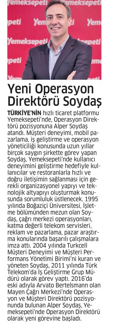 Yemeksepeti'nin yeni Operasyon Direktörü Alper Soydaş oldu