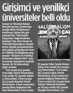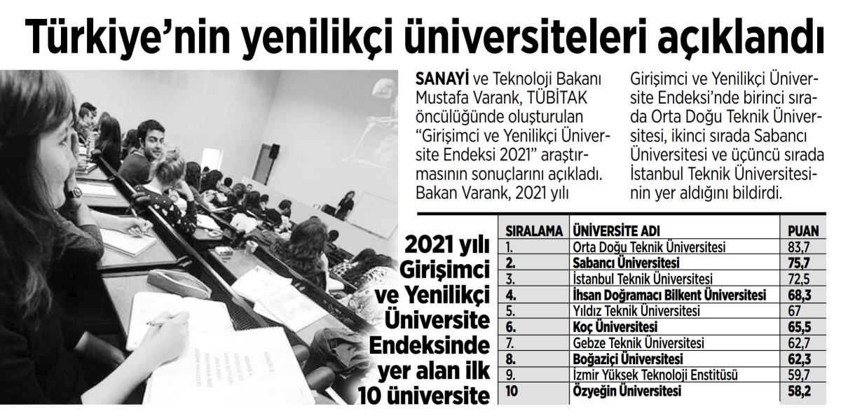 Türkiye'nin yenilikçi üniversiteleri açıklandı