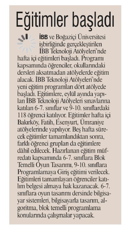 Teknoloji atölyelerinde hafta içi eğitimleri başladı