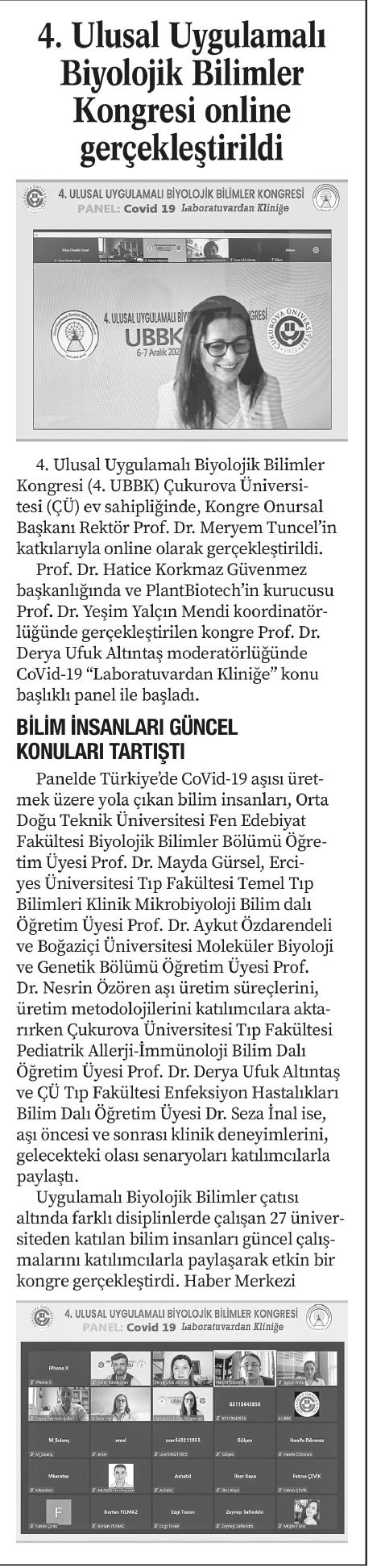 4. Ulusal Uygulamalı Biyolojik Bilimler Kongresi online gerçekleştirildi