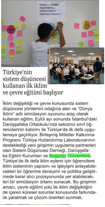 Türkiye'nin sistem düşüncesi kullanan ilk iklim ve çevre eğitimi başlıyor