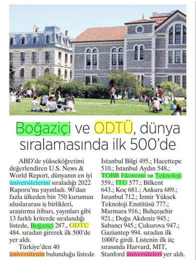 Boğaziçi ve ODTÜ dünya sıralamasında ilk 500'de