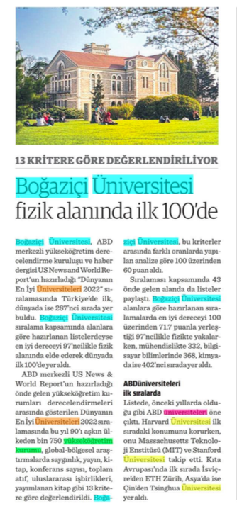 Boğaziçi fizikte ilk 100'e girdi
