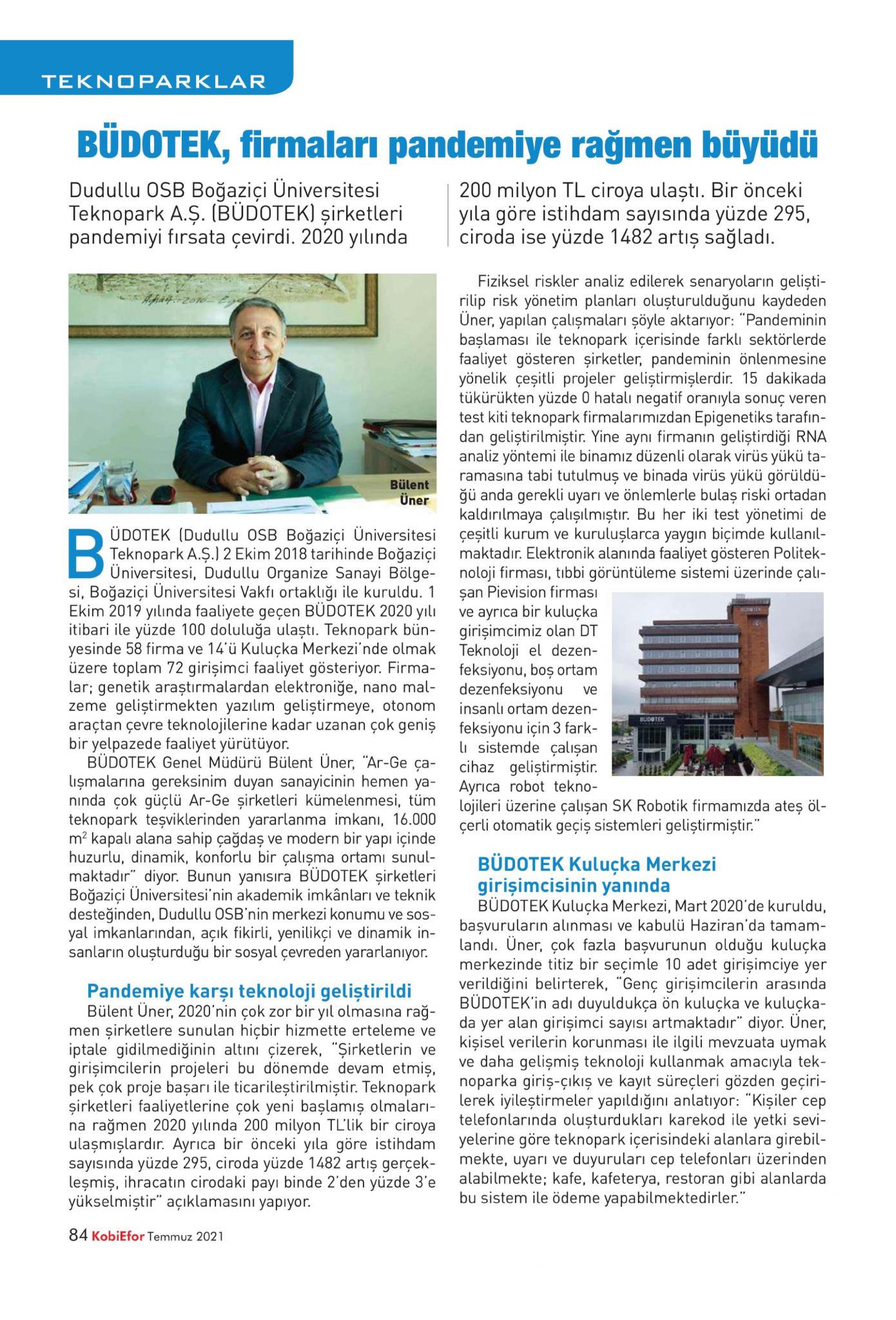 BÜDOTEK firmaları pandemiye rağmen büyüdü