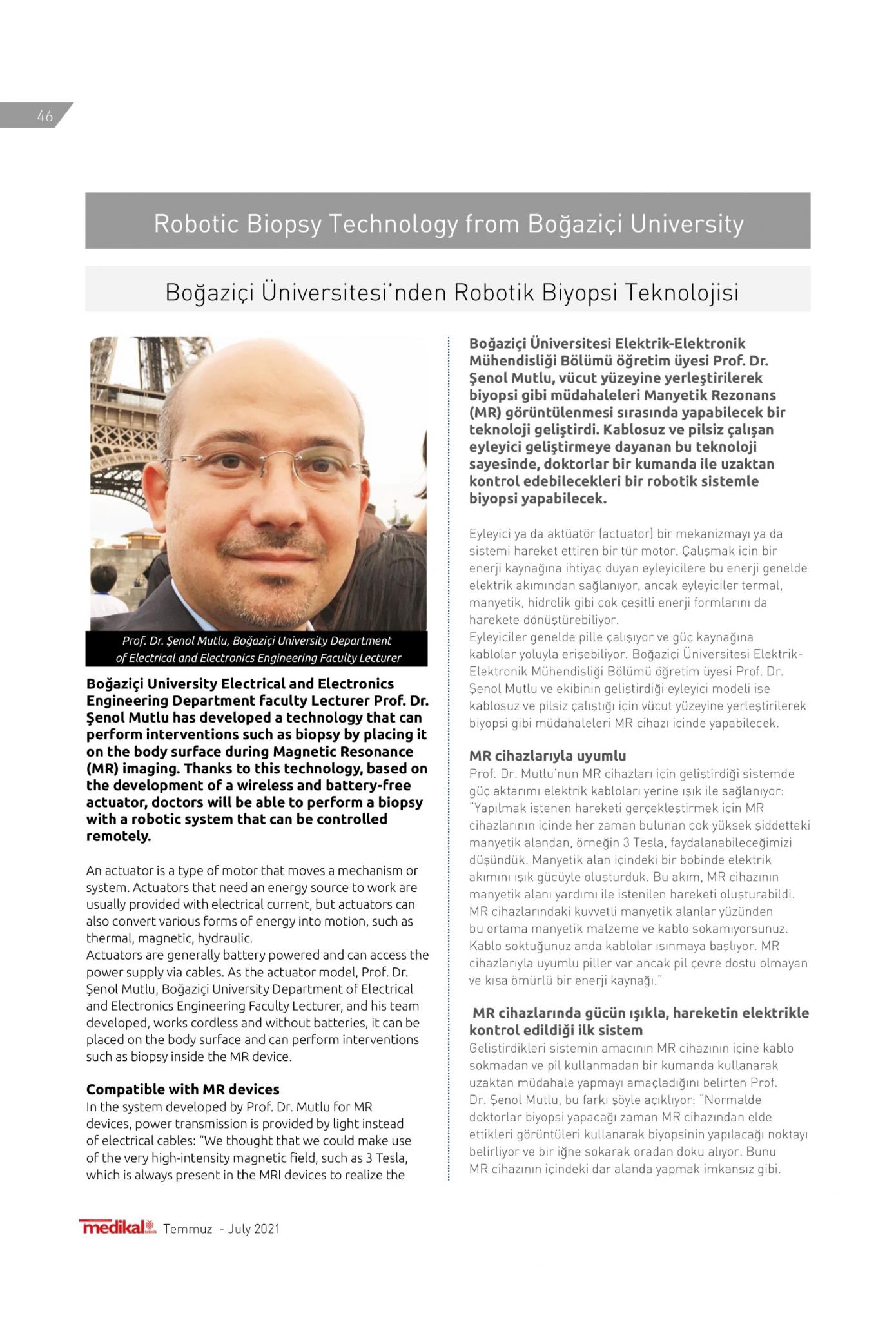Boğaziçi Üniversitesi'nden robotik biyopsi teknolojisi