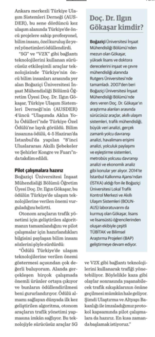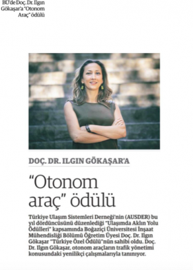 Doç. Dr. Ilgın Gökaşar’a “otonom araç” ödülü