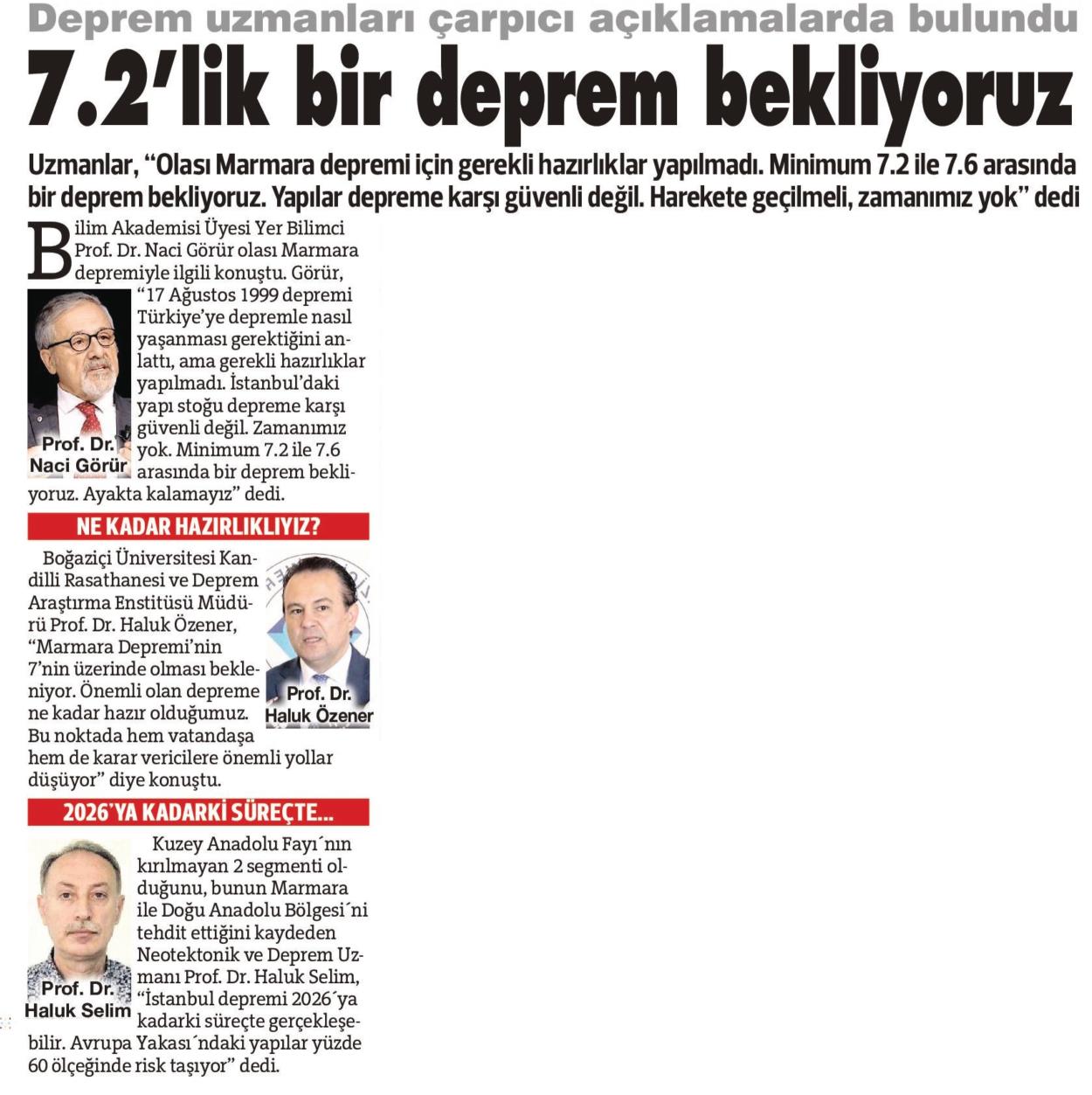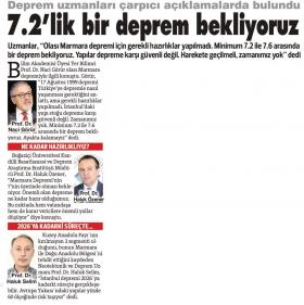 7.2'lik bir deprem bekliyoruz