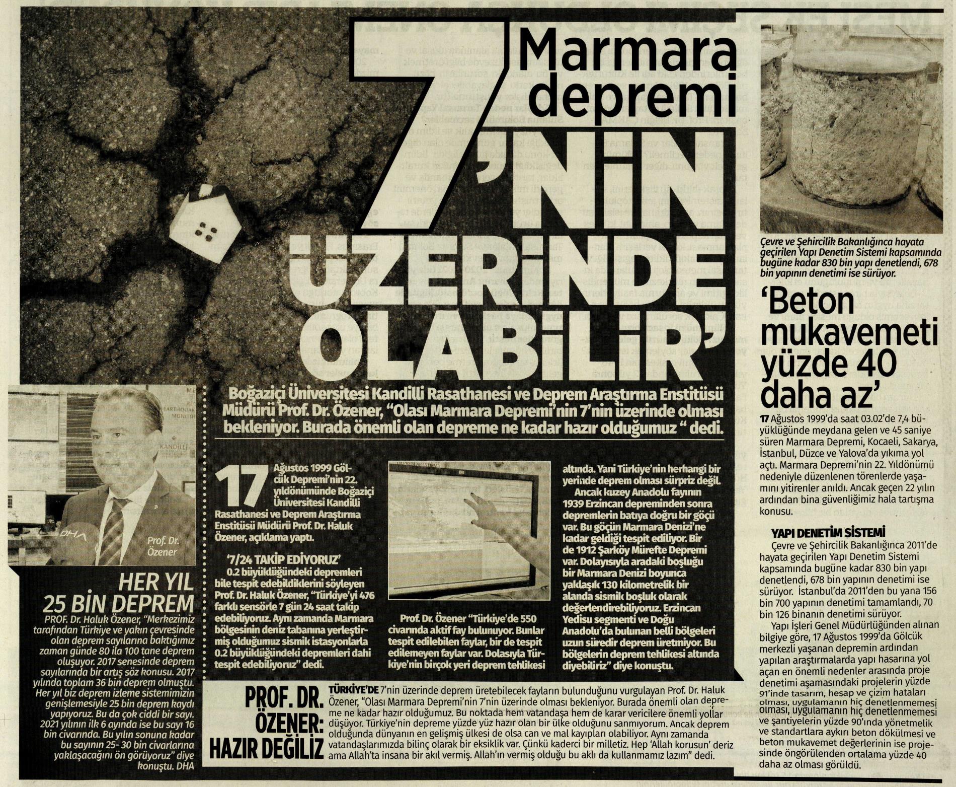 Marmara Depremi 7'nin üzerinde olabilir