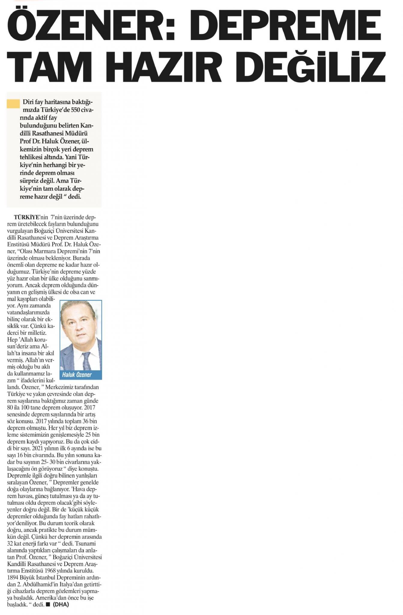 Özener: Depreme tam hazır değiliz