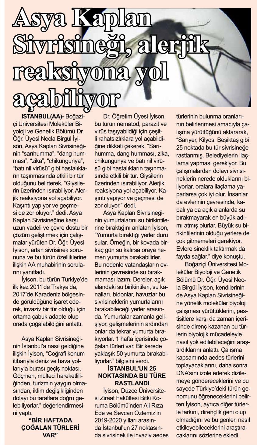 Asya Kaplan Sivrisineği alerjik reaksiyona yol açabiliyor