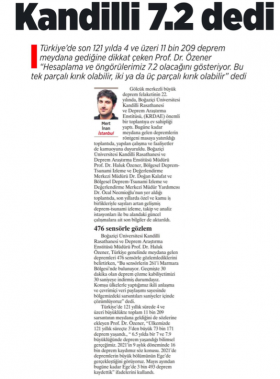 Kandilli 7.2 dedi