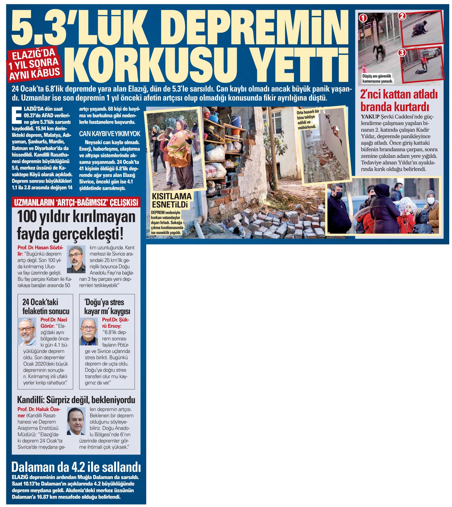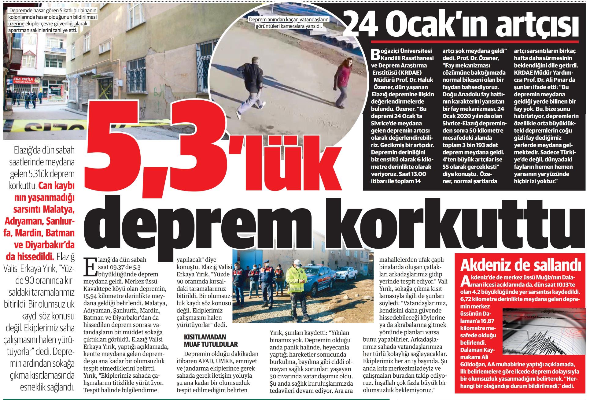 Elazığ'da 5,3'lük artçı deprem