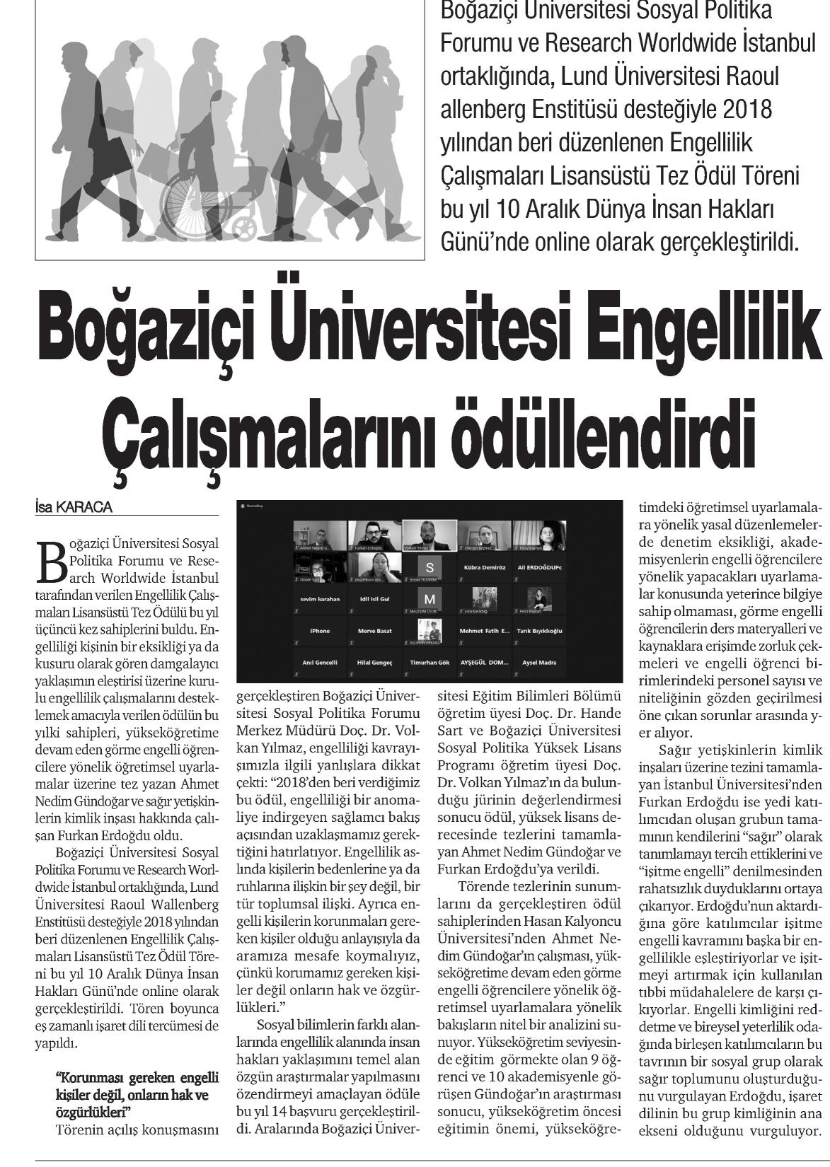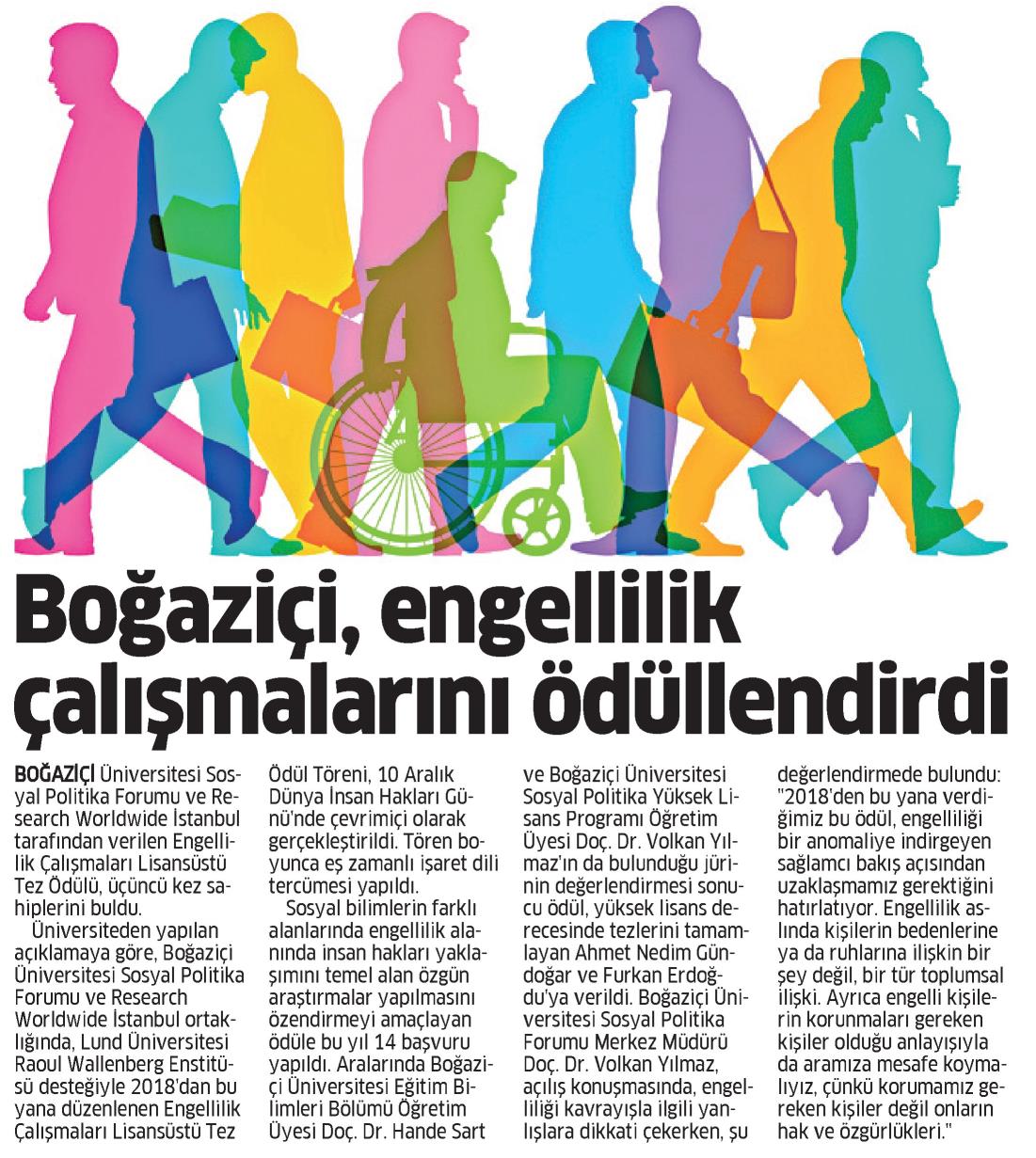 Boğaziçi, engellilik çalışmalarını ödüllendirdi