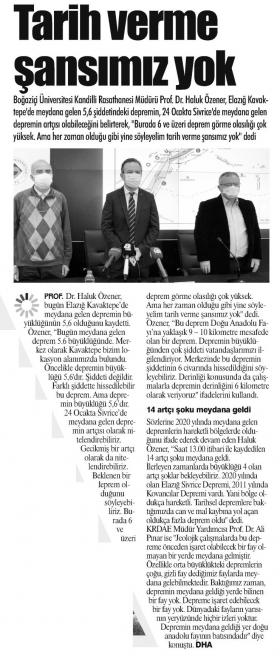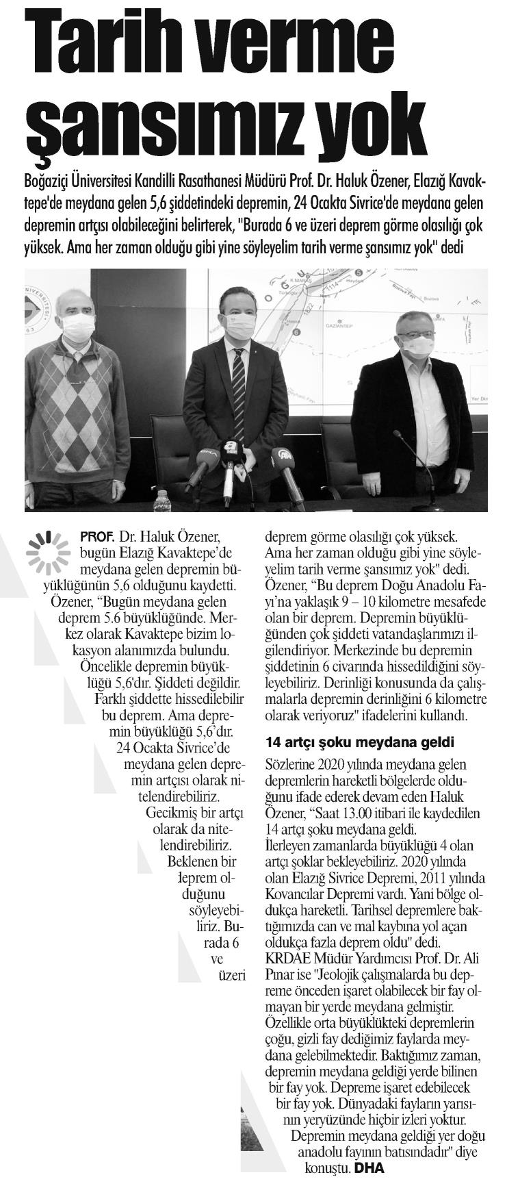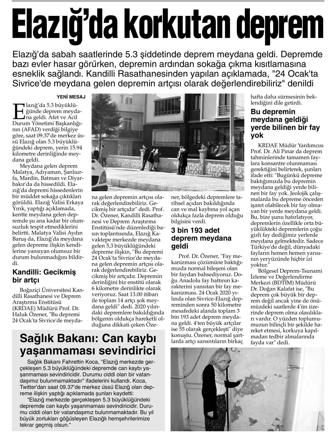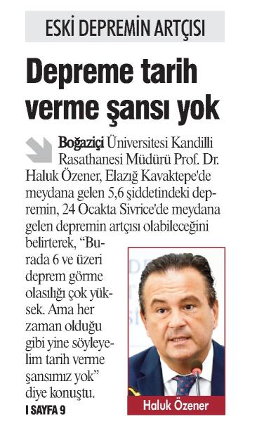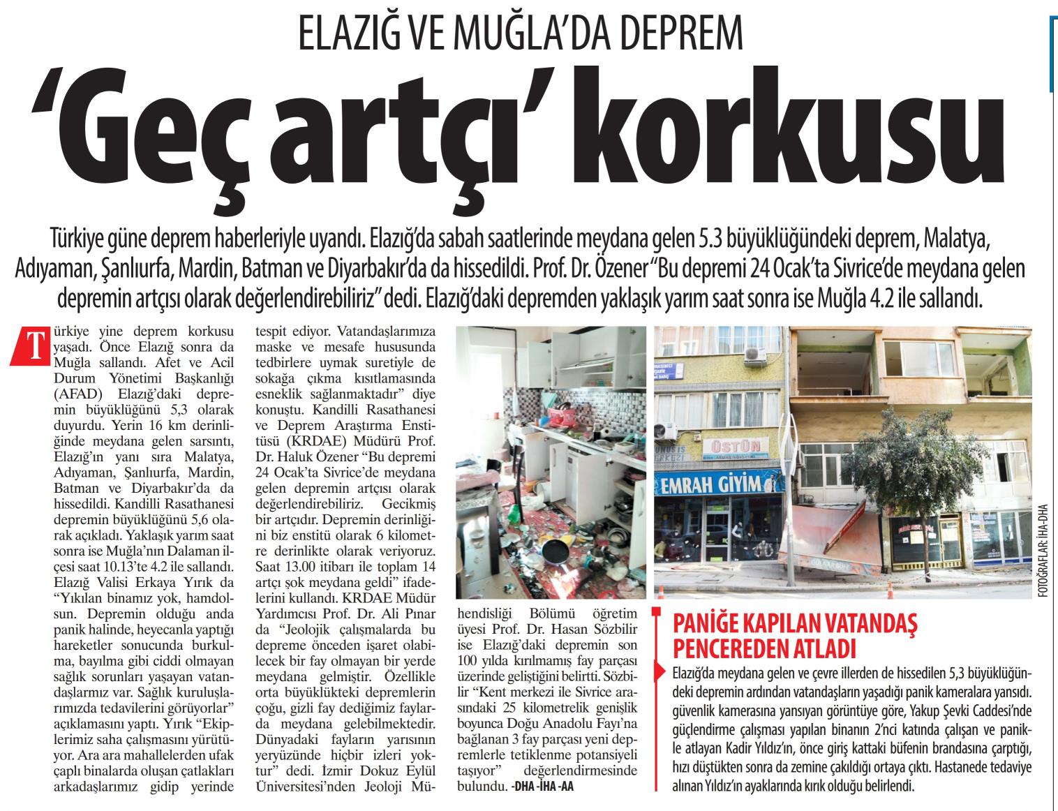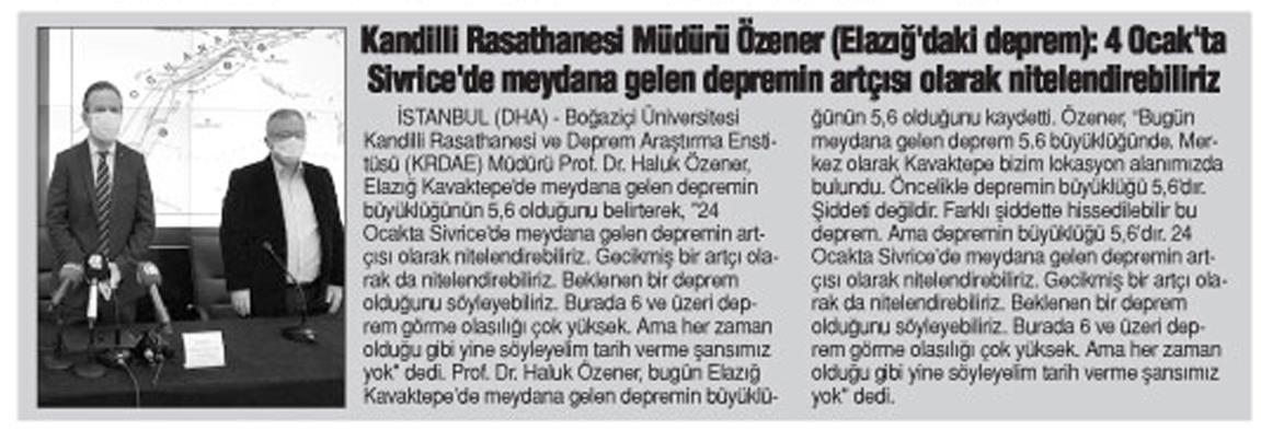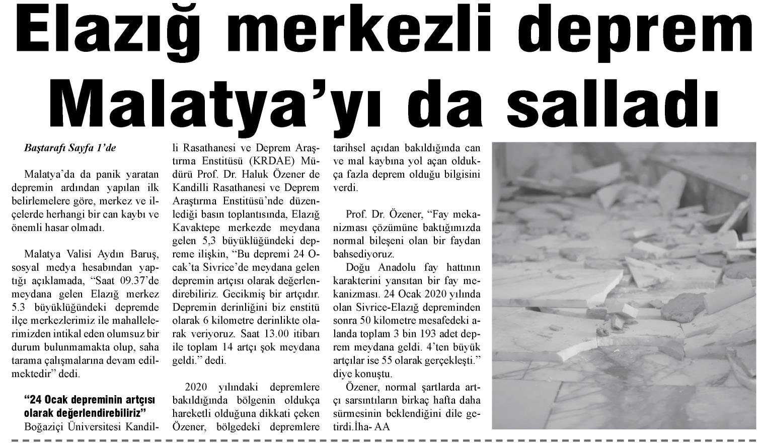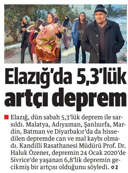 "4 Ocak'ta Sivrice'de meydana gelen depremin artçısı olarak nitelendirebiliriz"