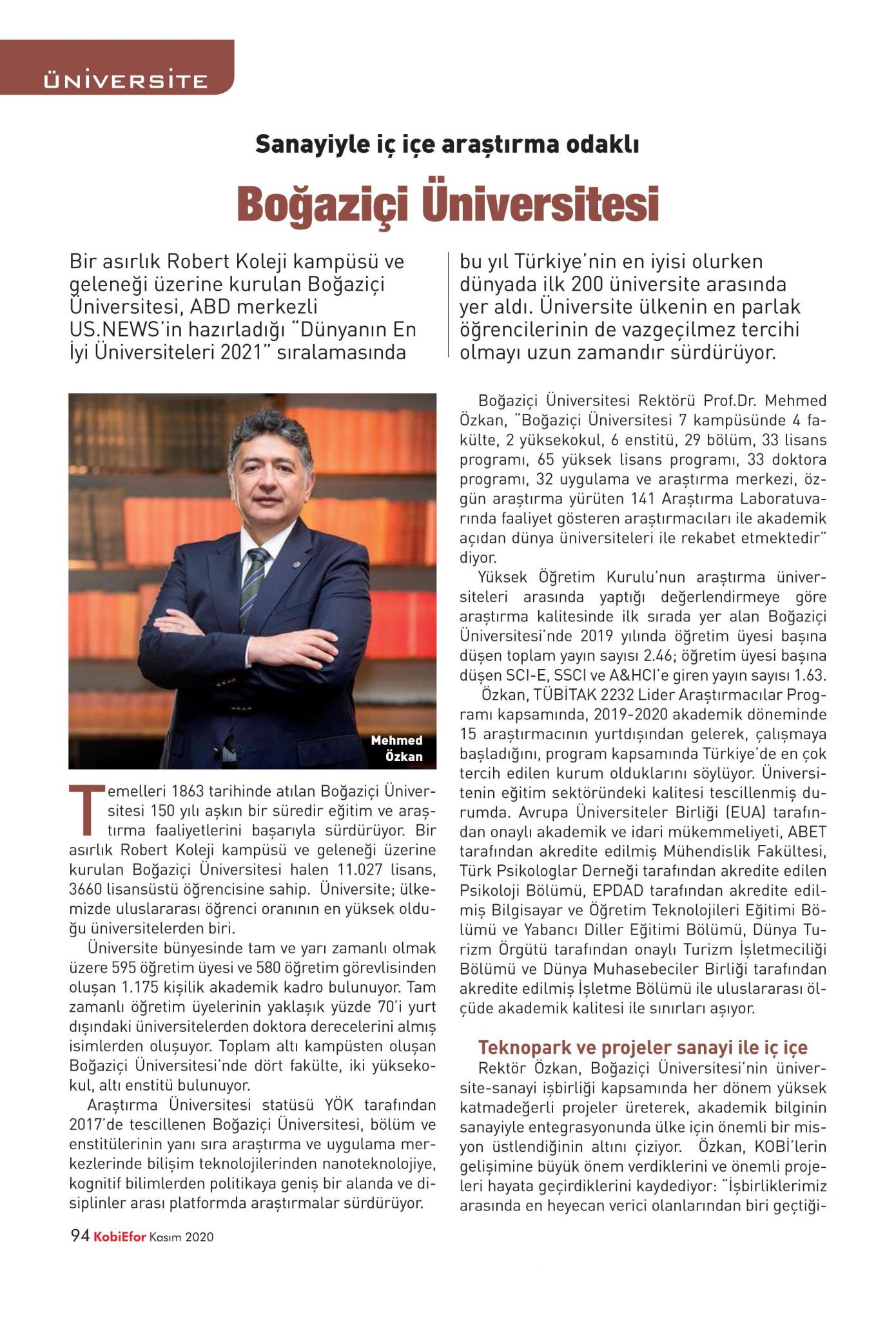 Sanayiyle iç içe araştırma odaklı Boğaziçi Üniversitesi