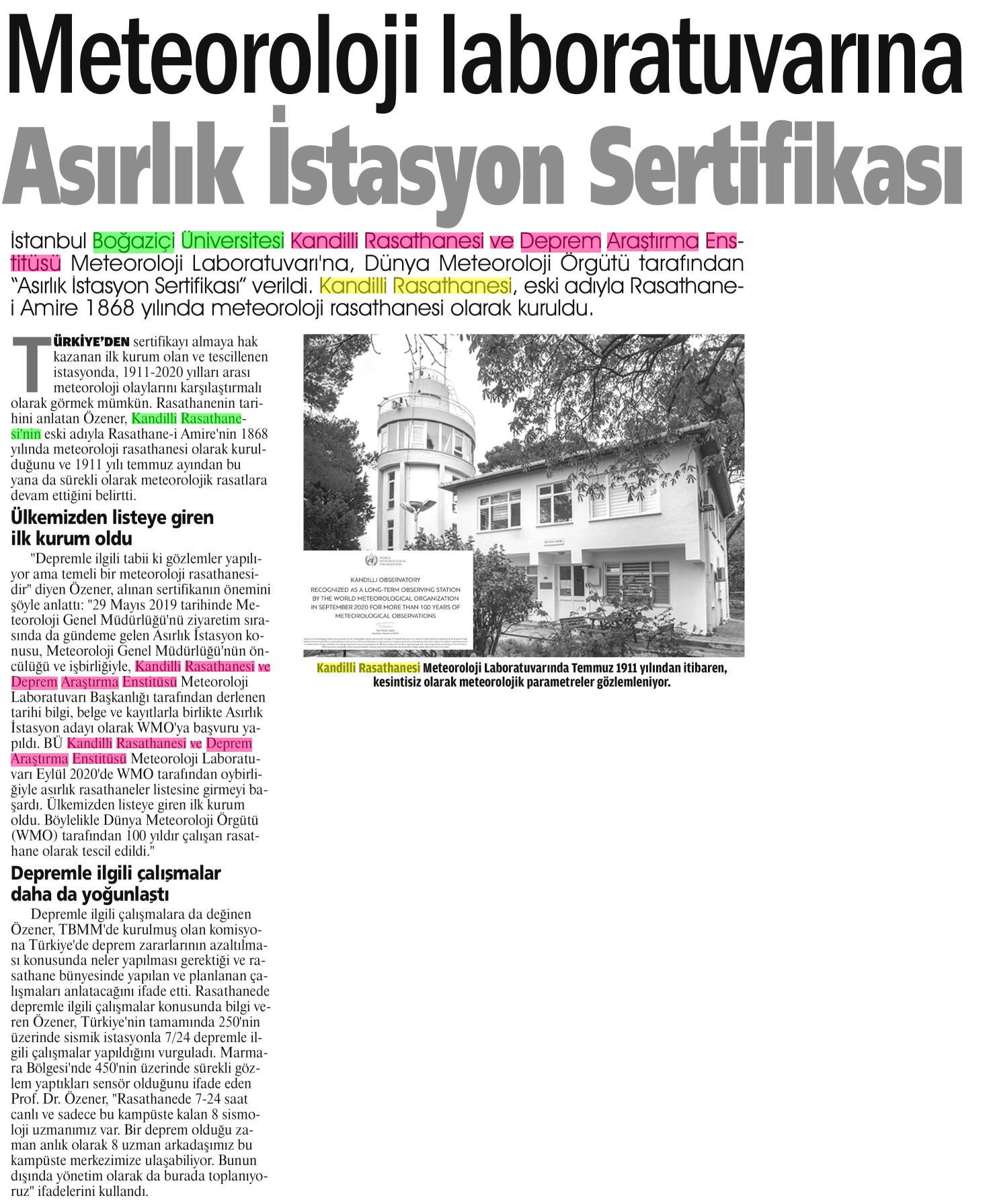 İstanbul'daki meteoroloji laboratuvarı...