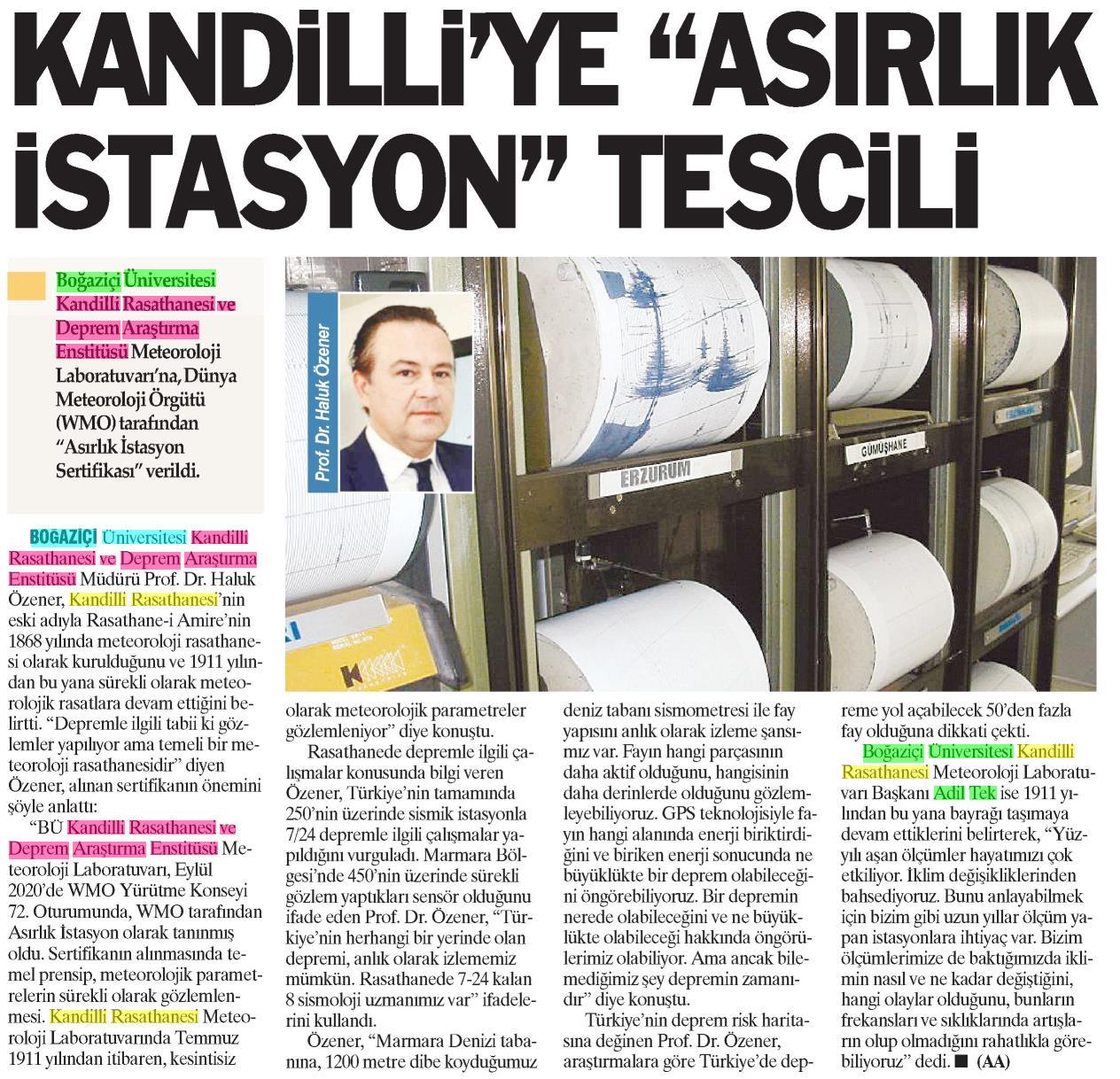 Kandilli asırlık istasyon oldu