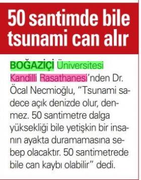 Tsunami 50 santimetre olsa bile ölümcül