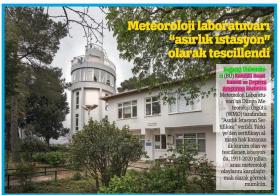 Meteroloji laboratuvarı asırlık istasyon olarak tescillendi