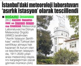 Meteoroloji Laboratuvarı'na asırlık istasyon sertifikası