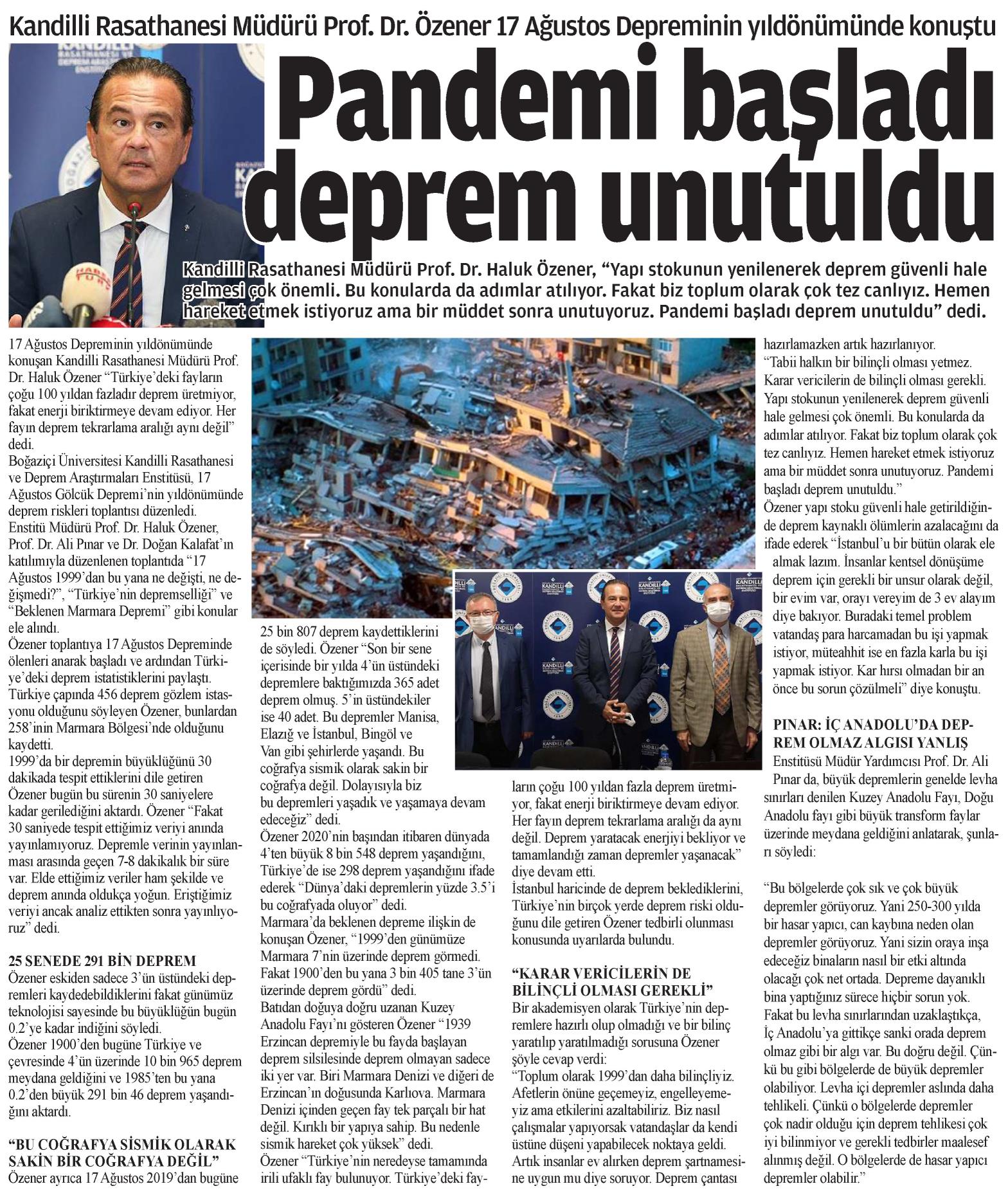 Pandemi başladı deprem unutuldu