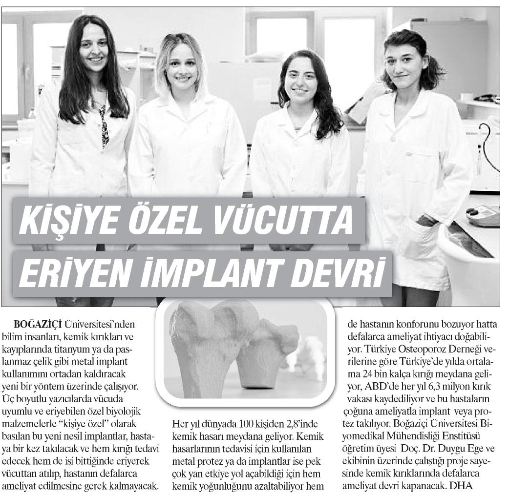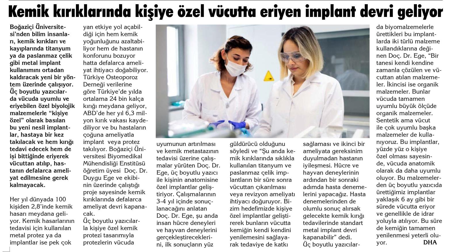 Kemik kırıklarında kişiye özel vücutta eriyen implant