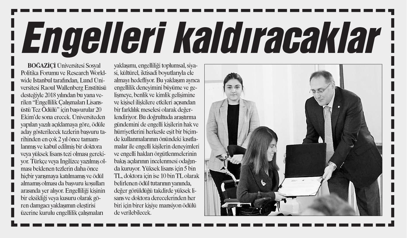 Boğaziçi'nden engellilik çalışmalarına ödül