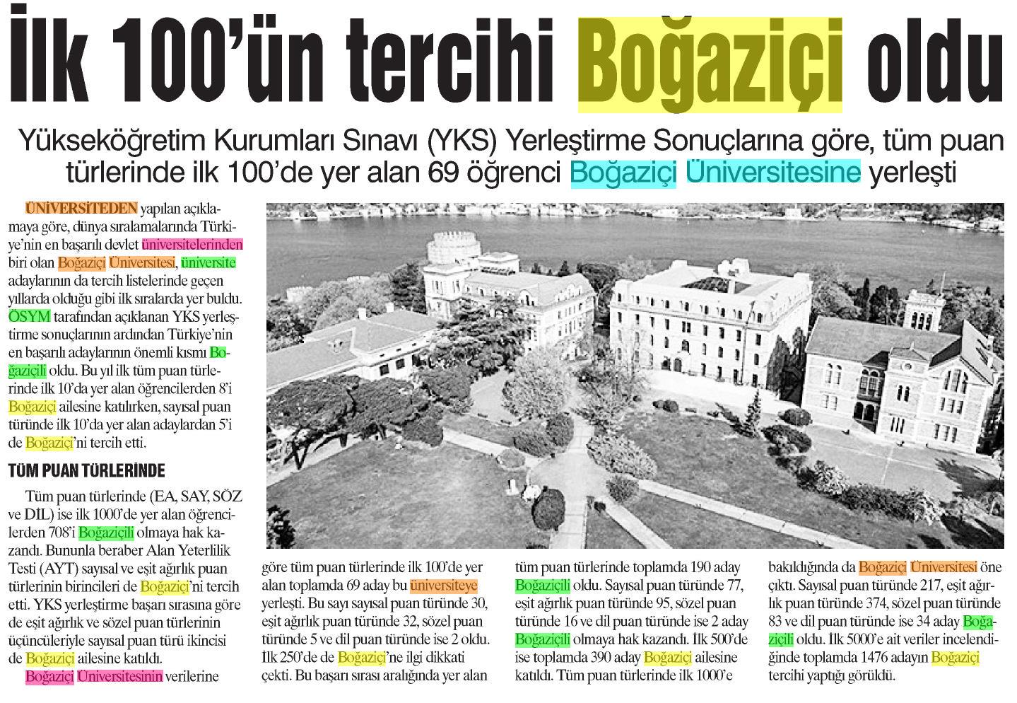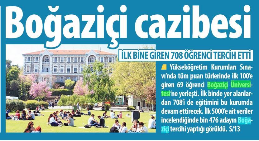 İlk 100'ün tercihi Boğaziçi oldu