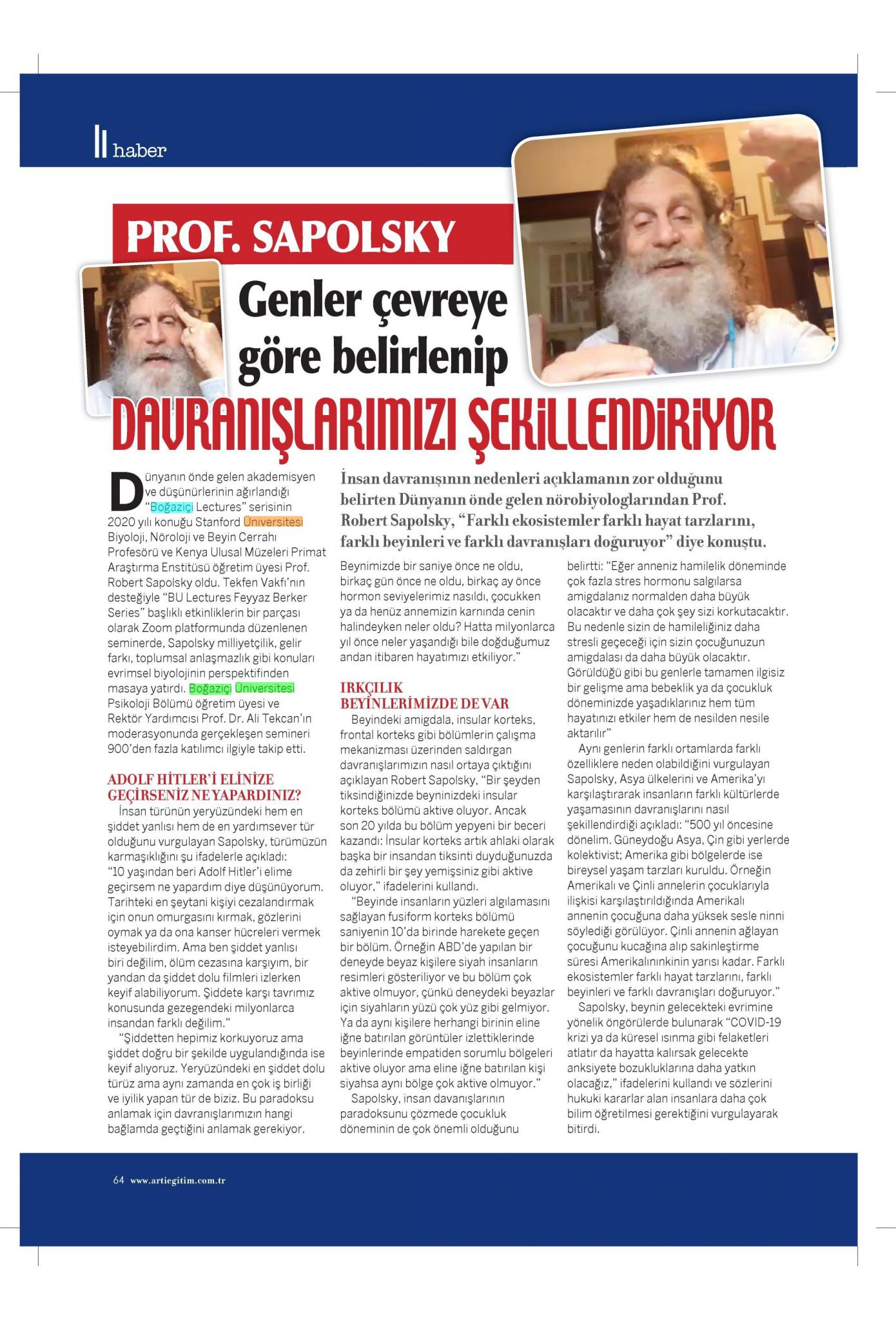 Prof. Robert Sapolsky : “Genler çevreye göre belirlenip davranışlarımızı şekillendiriyor”