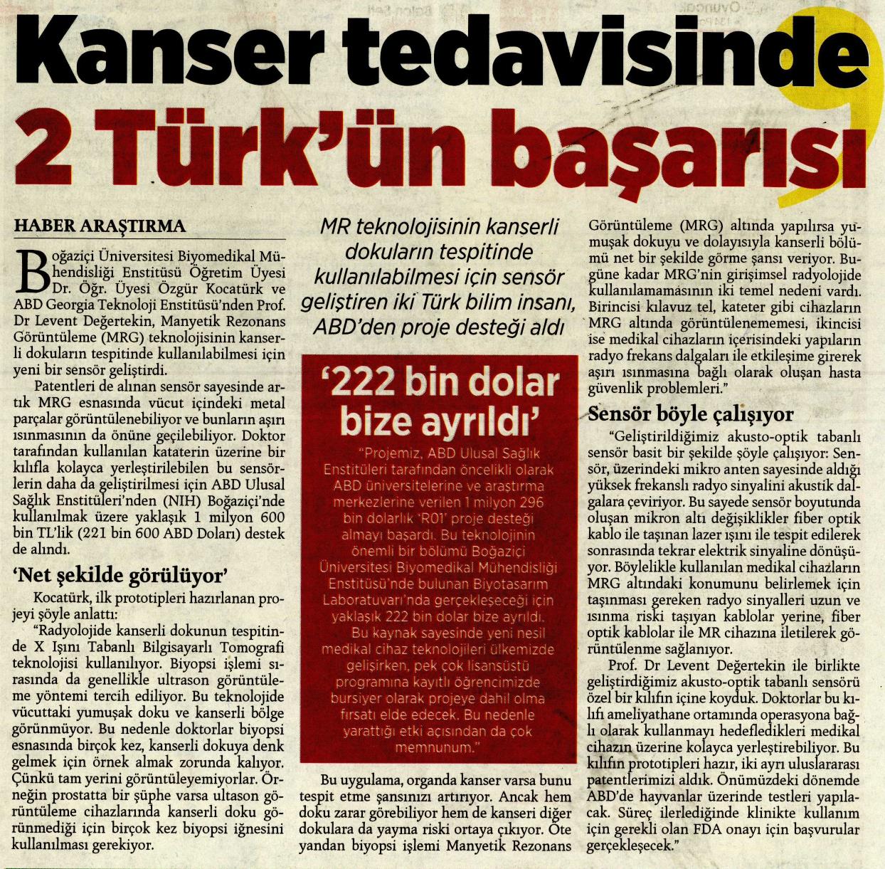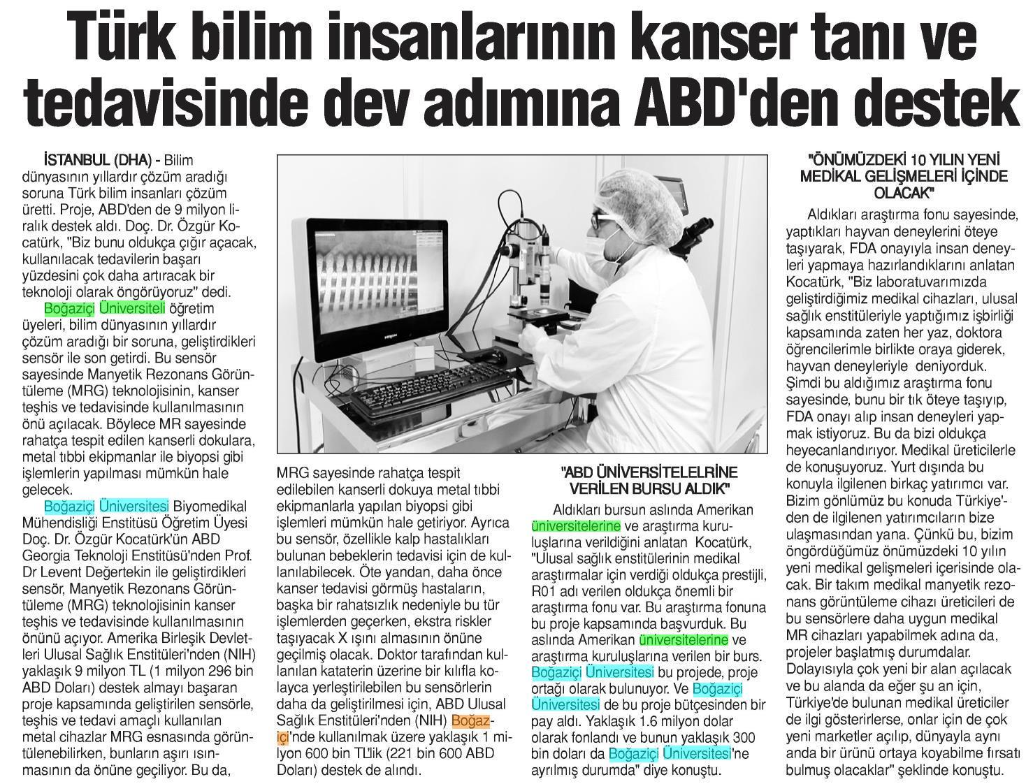 Türk bilim insanlarının kanser tanı ve tedavisinde dev adımına ABD'den destek