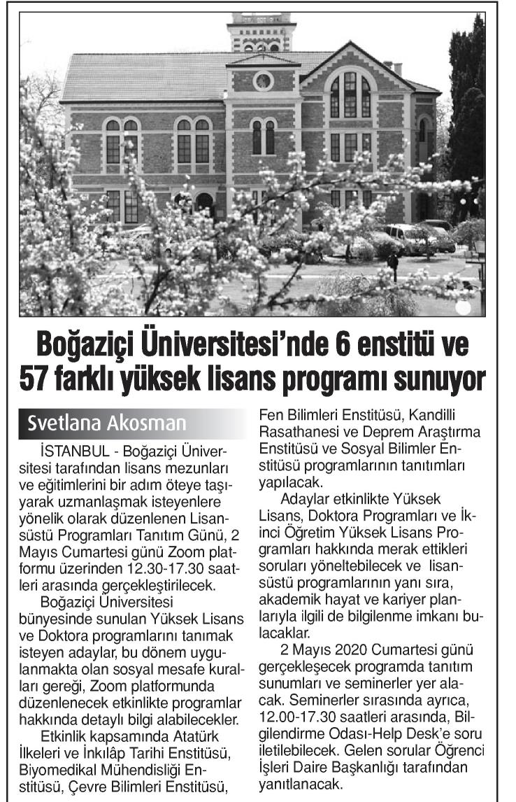 Boğaziçi Üniversitesi'nde 6 enstitü 57 farklı yüksek lisans programı sunuyor