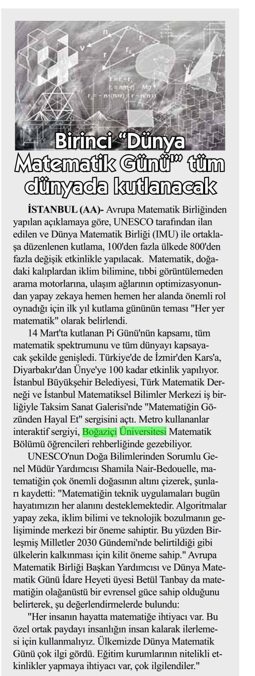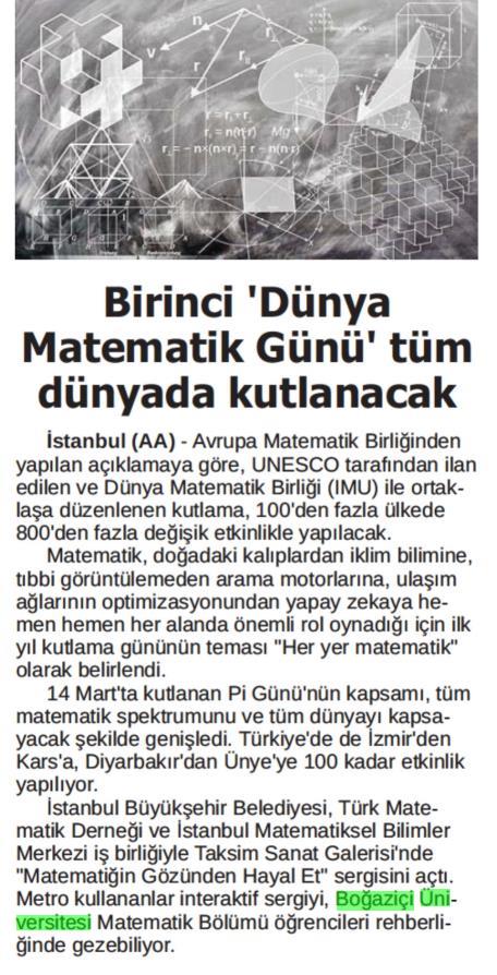 Birinci Dünya Matematik Günü...