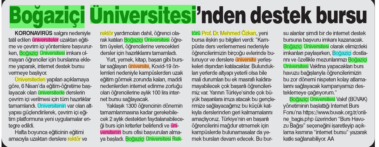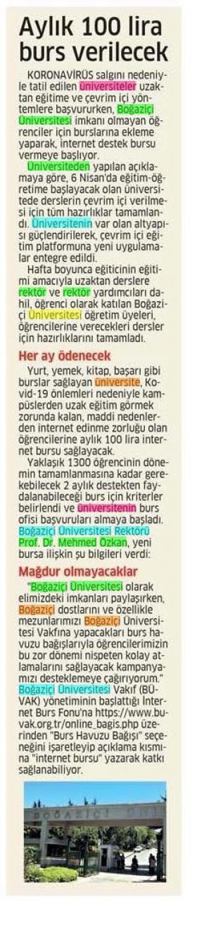 Boğaziçi Üniversitesi'nden destek bursu