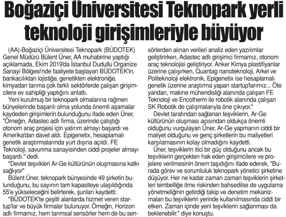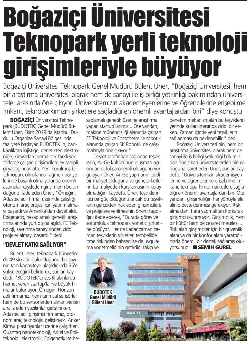 "Boğaziçi Üniversitesi Teknopark yerli teknoloji girişimleriyle büyüyor"