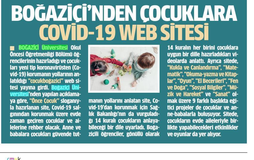 Boğaziçi'nde çocuklara COVİD-19 web sitesi