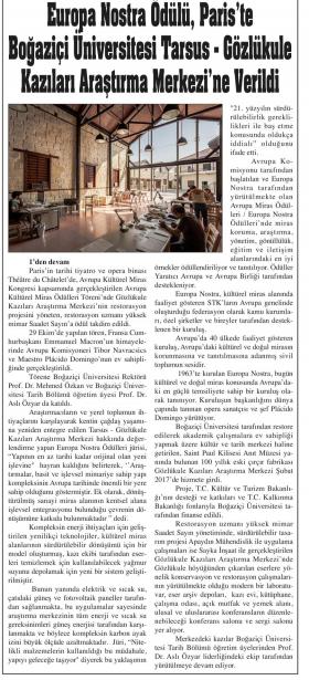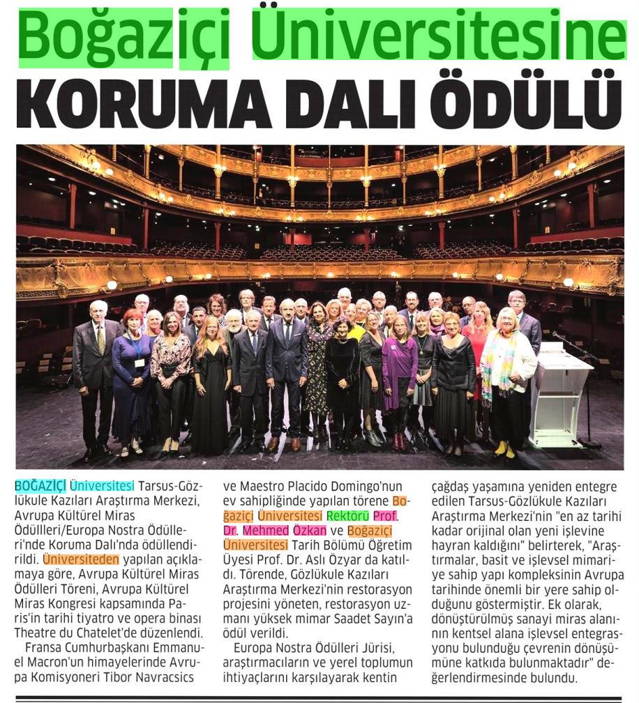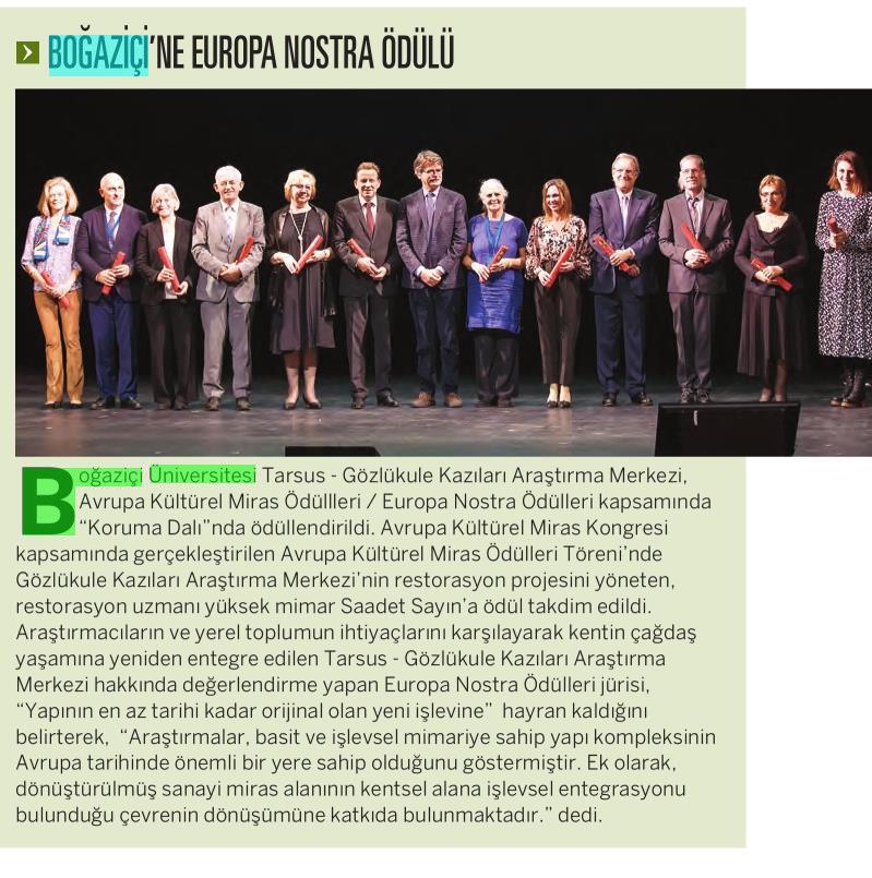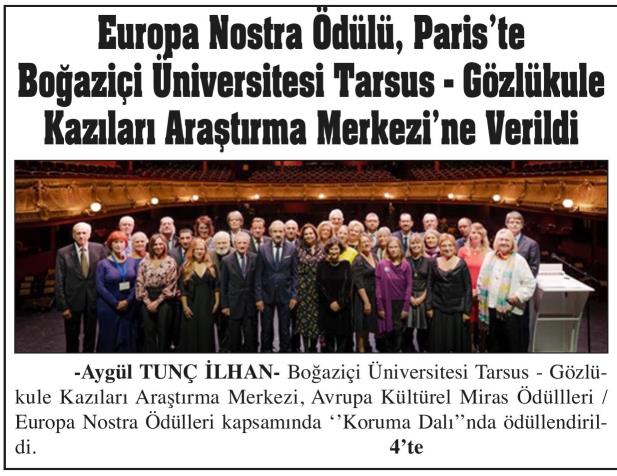 Europa Nostra Ödülü, Paris'te Boğaziçi Üniversitesi Tarsus-Gözlükule Kazıları Araştırma Merkezi'ne verildi