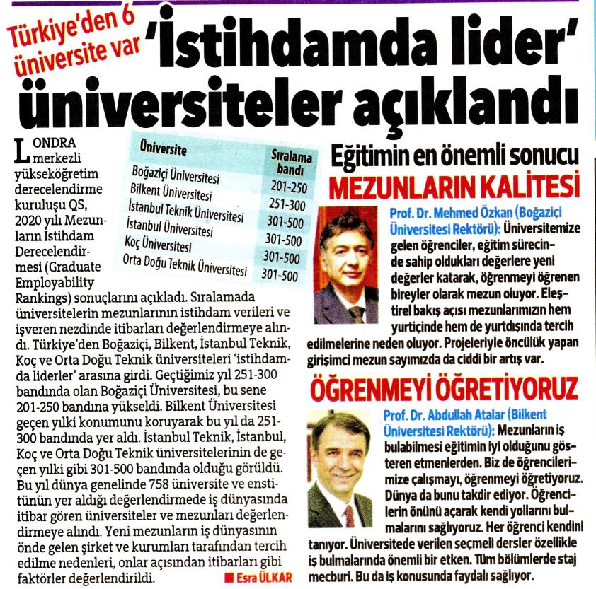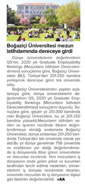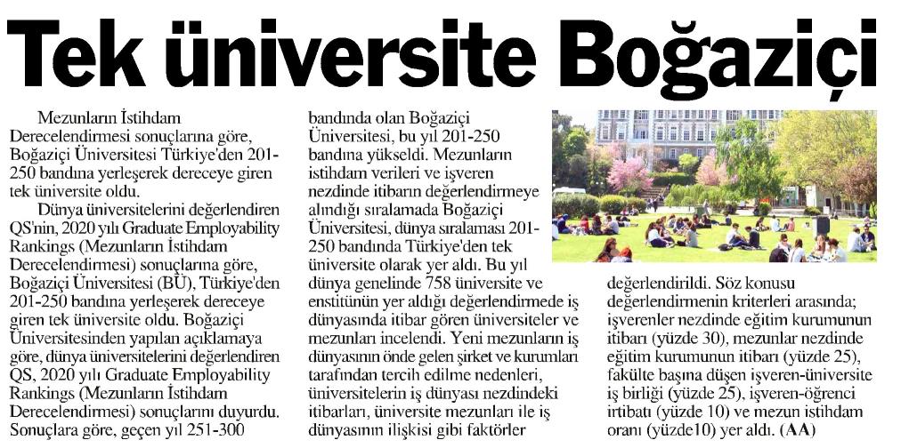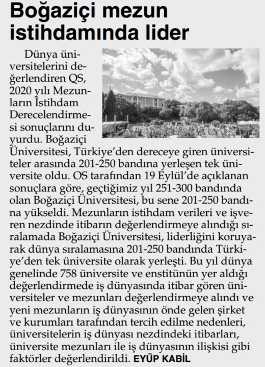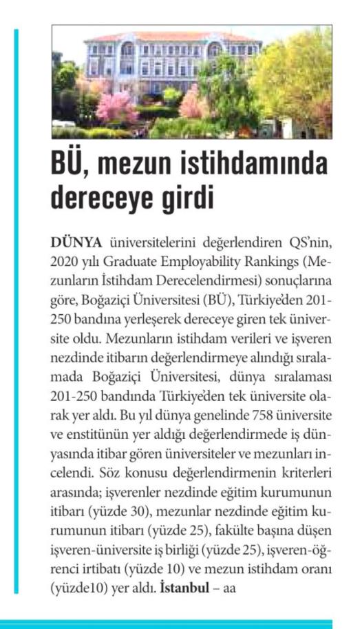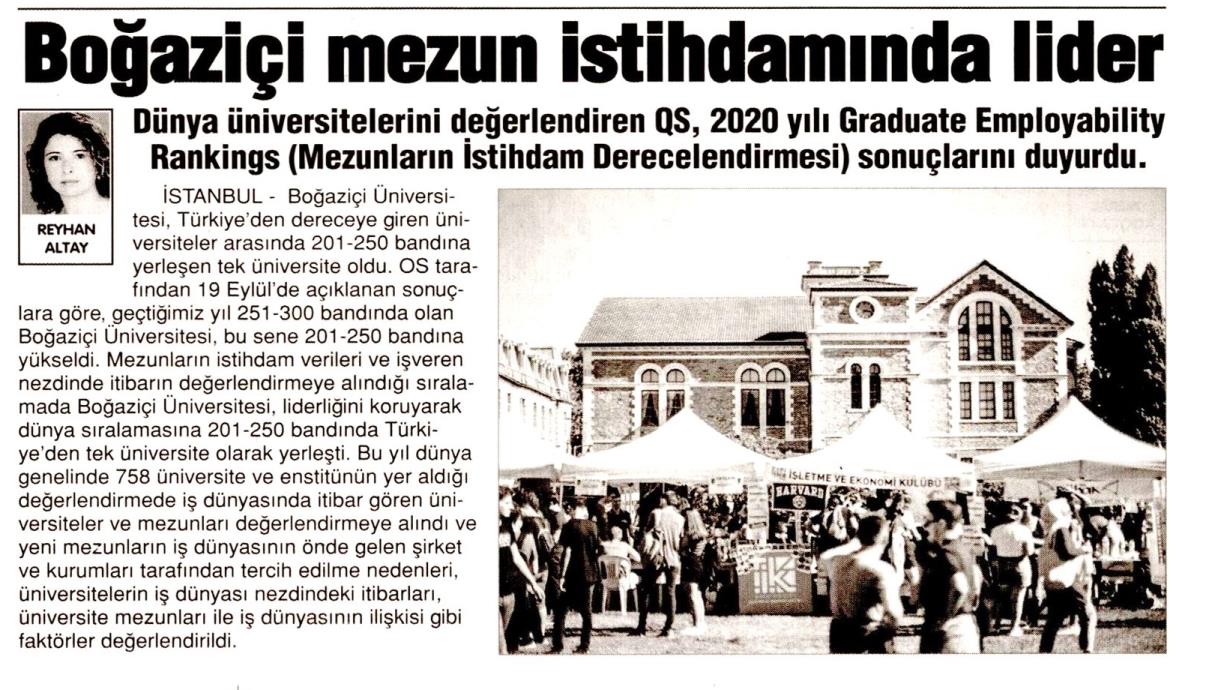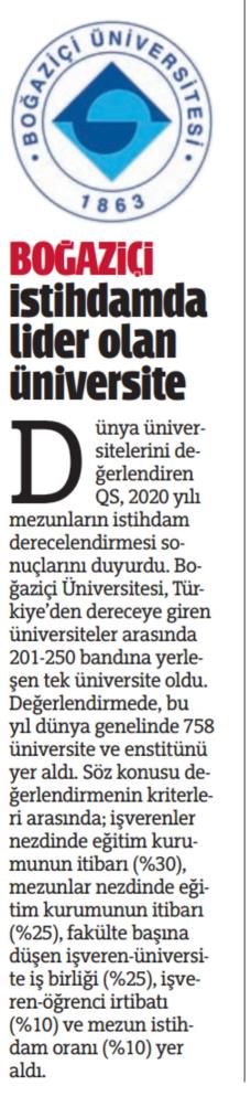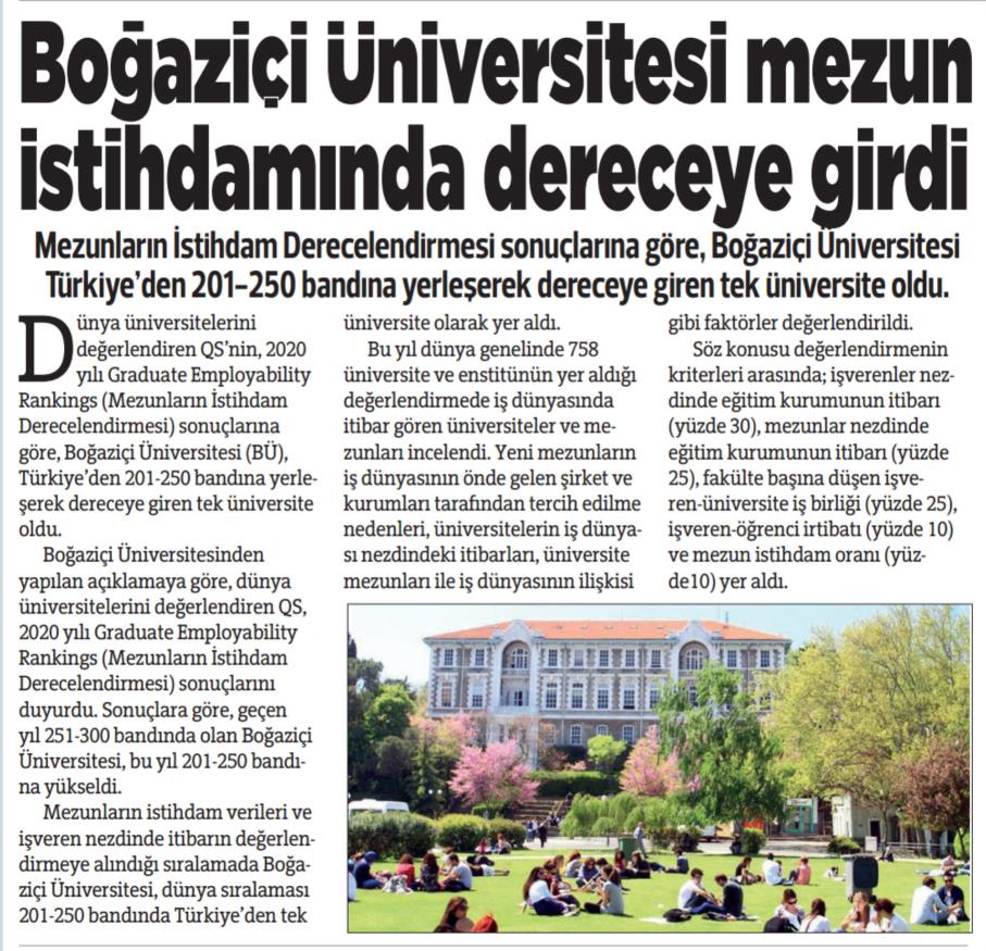 Boğaziçi Üniversitesi mezun istihdamında dereceye girdi