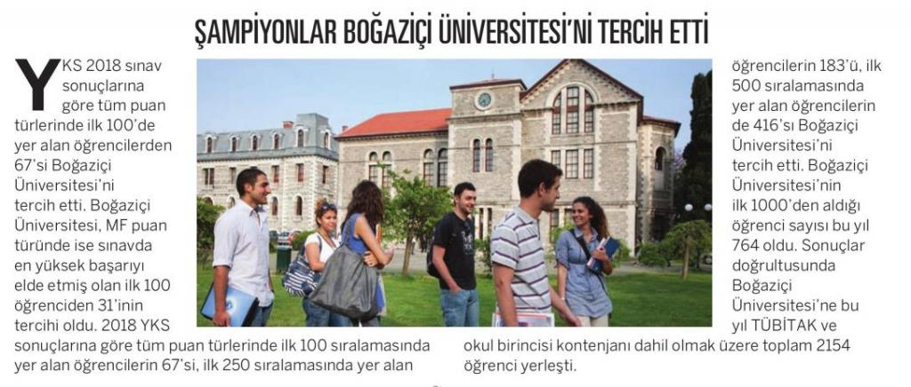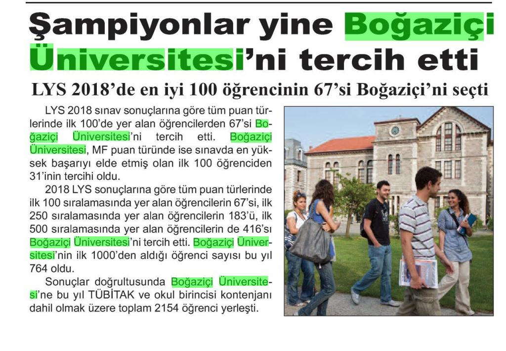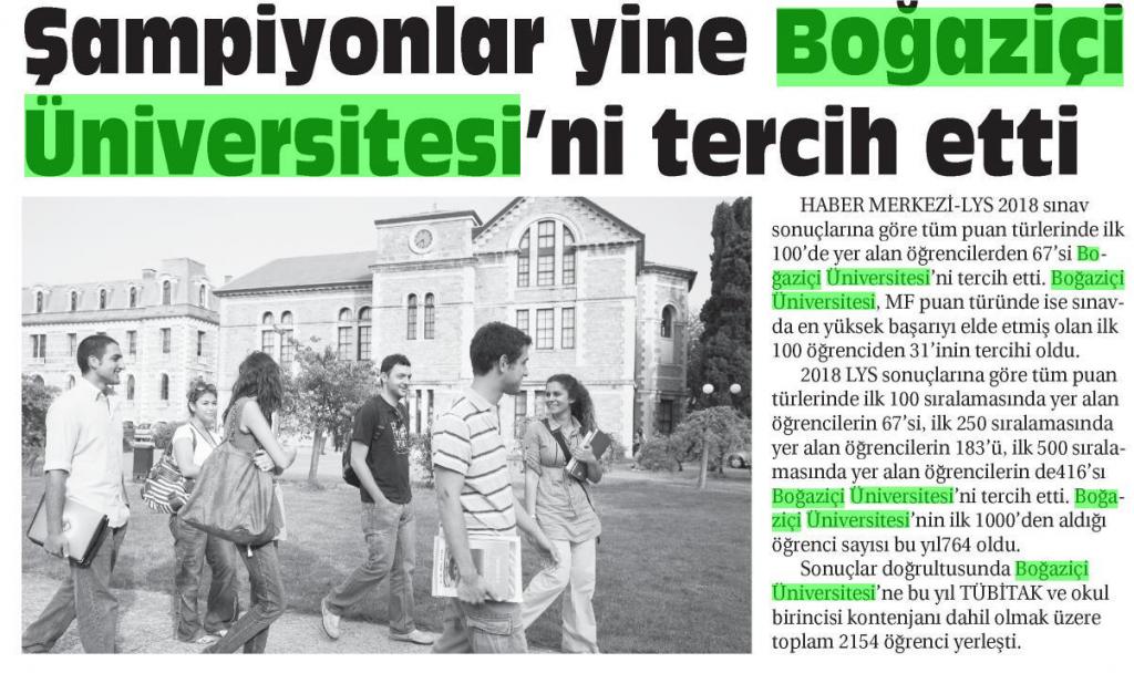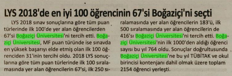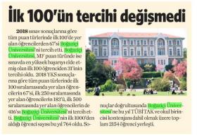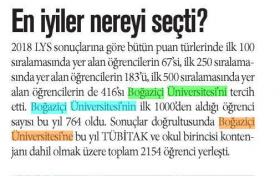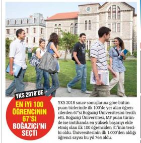 LYS 2018'de en iyi 100 öğrencinin 67'si Boğaziçi'ni seçti