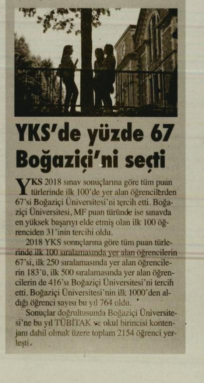 YKS'de yüzde 67 Boğaziçi'ni seçti