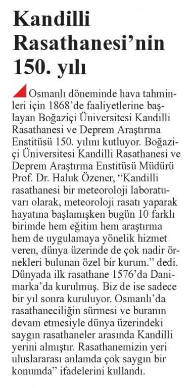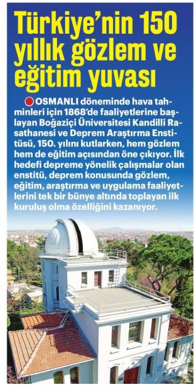 Kandilli Rasathanesi 150 yaşını kutlayacak