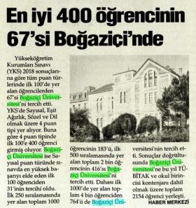En iyi 400 öğrencinin 67'si Boğaziçi'nde