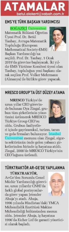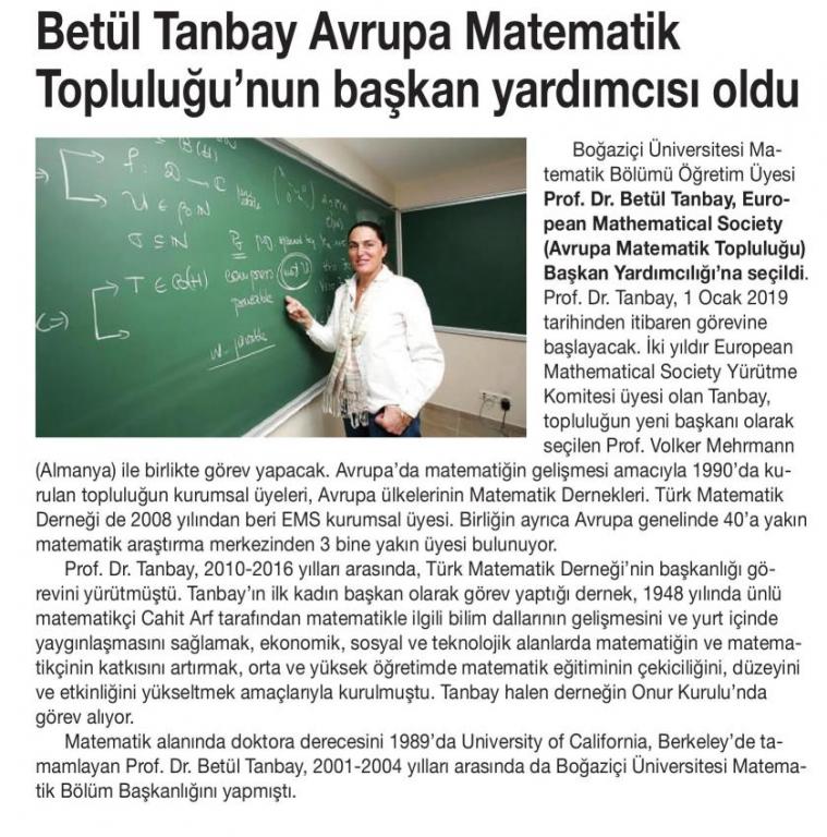 Betül Tanbay Avrupa Matematik Topluluğu'nun başkan yardımcısı oldu