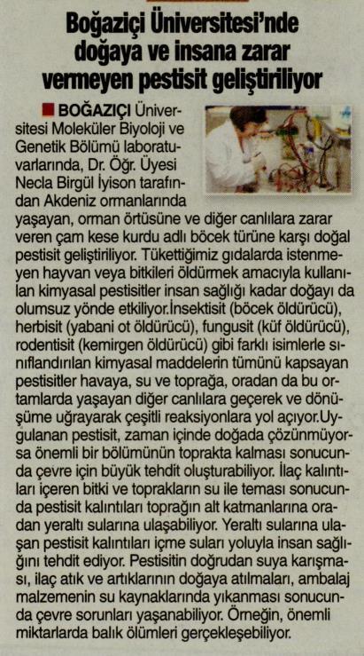 Boğaziçi Üniversitesi'nde doğaya ve insana zarar vermeyen pestisit geliştiriliyor
