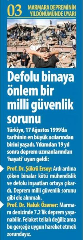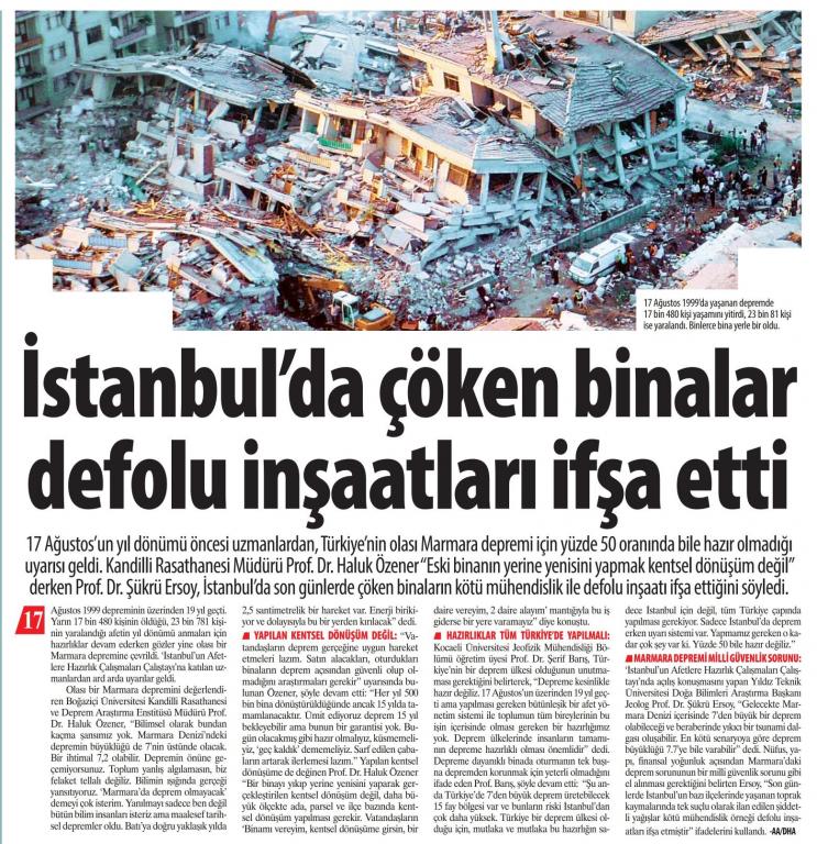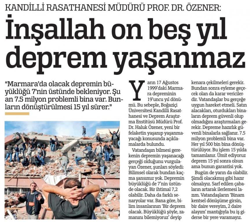 Kandilli Rasathanesi Müdürü Prof. Dr. Özener: İnşallah on beş yıl deprem yaşanmaz