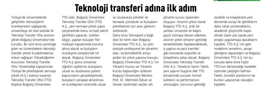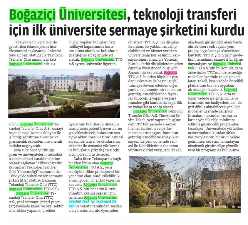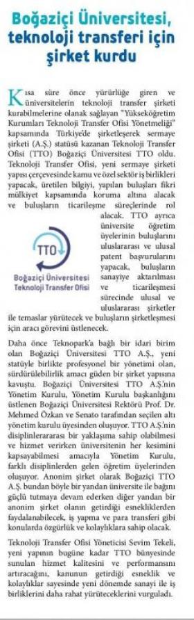 Teknoloji Transfer Ofisi anonim şirketi Boğaziçi'nde kuruldu