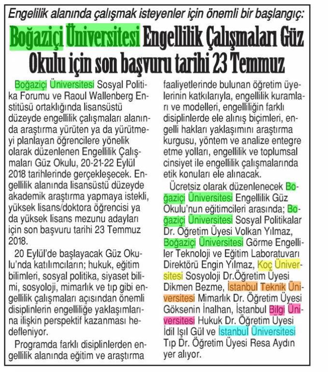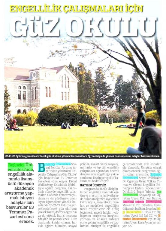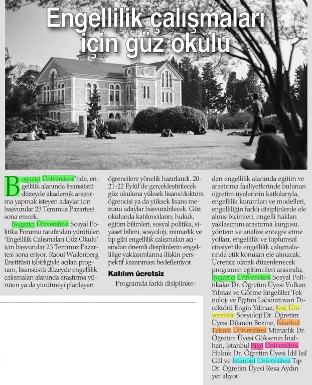 Boğaziçi Üniversitesi Engellilik Çalışmaları Güz Okulu için son başvuru tarihi 23 Temmuz