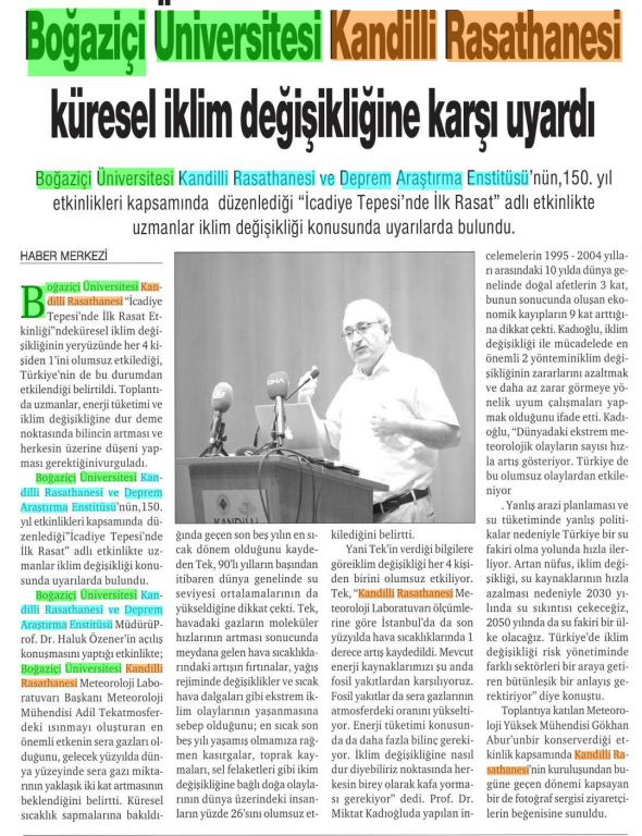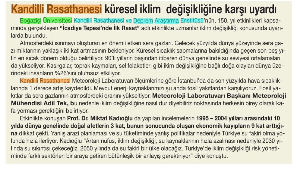 Boğaziçi Üniversitesi Kandilli Rasathanesi küresel iklim değişikliğine karşı uyardı
