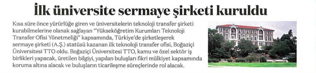 Boğaziçi Üniversitesi, Teknoloji Transferi İçin İlk Üniversite Sermaye Şirketini Kurdu