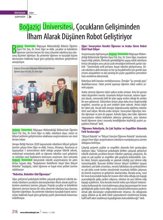 BOĞAZİÇİ ÜNİVERSİTESİ, ÇOCUKLARIN GELİŞİMİNDEN İLHAM ALARAK DÜŞÜNEN ROBOT GELİŞTİRİYOR