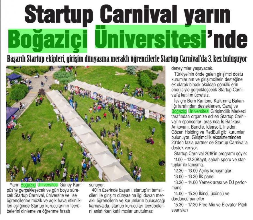 Startup Carnival yarın Boğaziçi Üniversitesi'nde